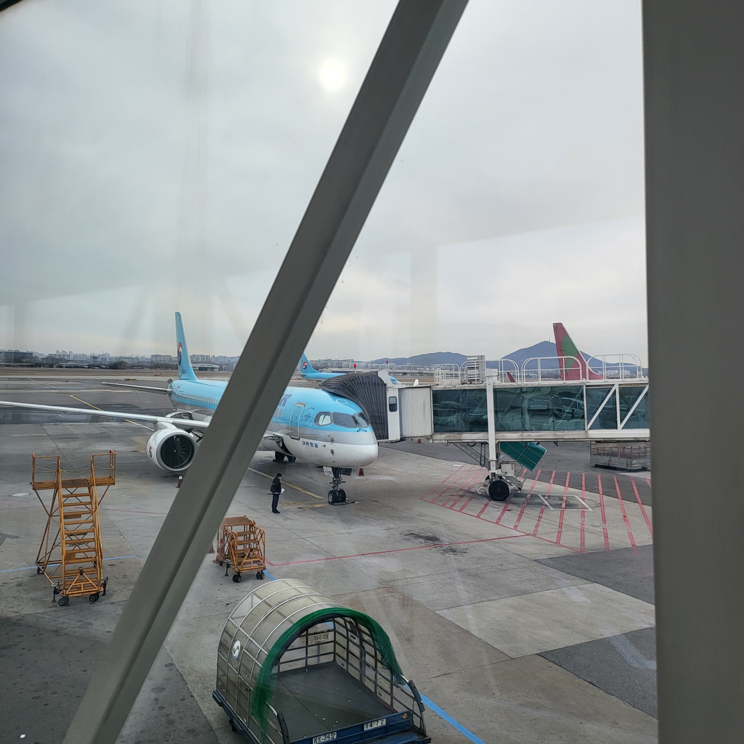 김포 공항에 있는 키오스크를 활용해서 체크 인하고 짐을 부쳤어요.